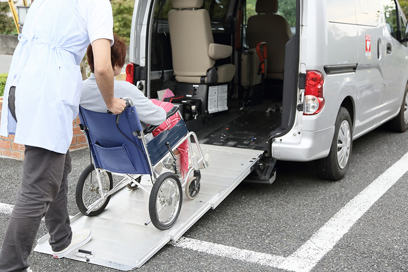 送迎車にて、職員が順番にご自宅までお迎えにあがります。